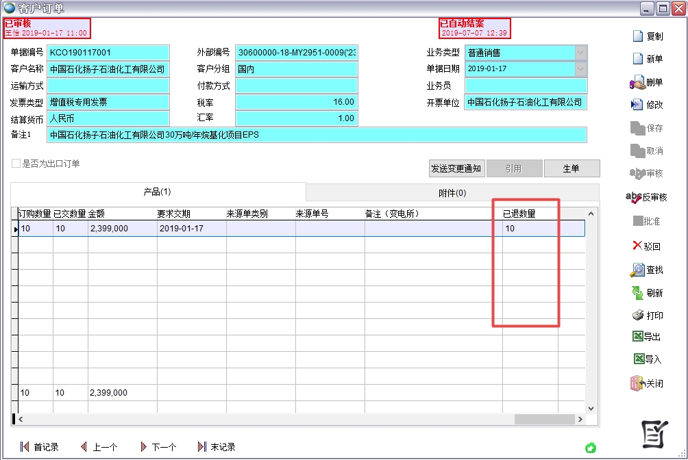 如下圖在工作流中設置了審核,則審核后的銷售退貨單才生效