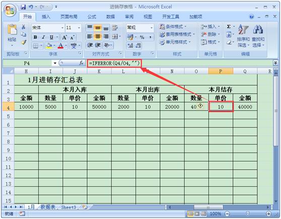 14.在【本月結存】欄目【數量】處輸入公式:=F4+I4-L4,【金額】處輸入公式:=H4+K4-N4,【單價】處輸入公式:=IFERROR(Q4/O4,"")。 注意:單價之所以用倒除的方式,主要是因為期初、入庫和出庫的單價可能不一致。 15.日常錄入時,當天有出入庫可以錄入在同一行,也可以一行只錄入出庫,一行只錄入入庫。如果強調日期的話,可以將【序號】列改成日期輸入或者加入一欄日期。