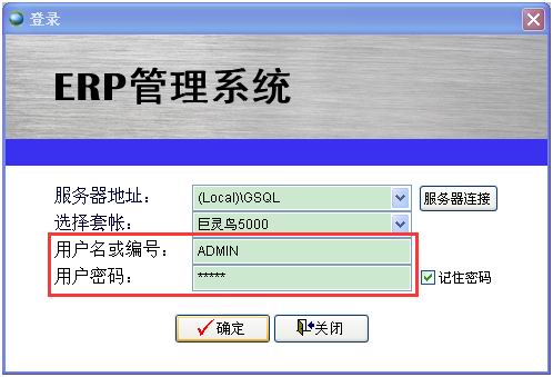 在巨靈鳥ERP系統(tǒng)的登錄界面,用戶名:admin,密碼:admin。字母是不分大小寫的。