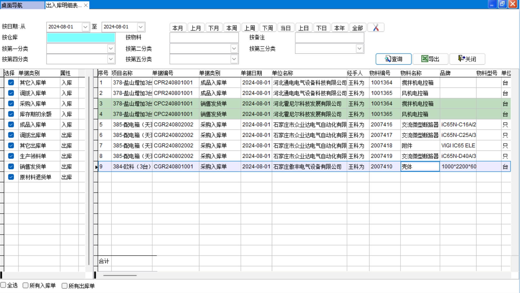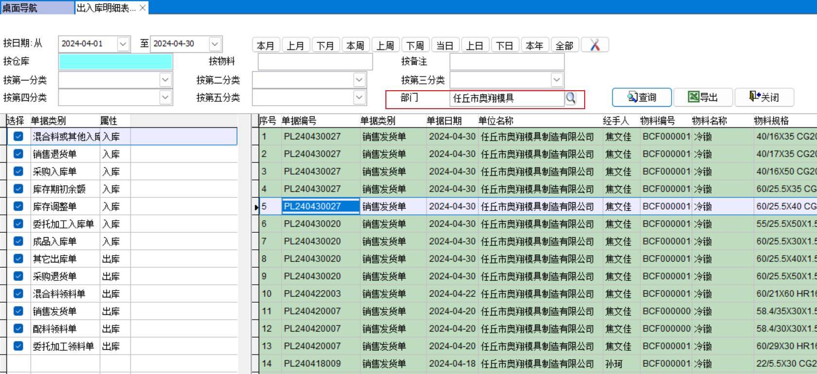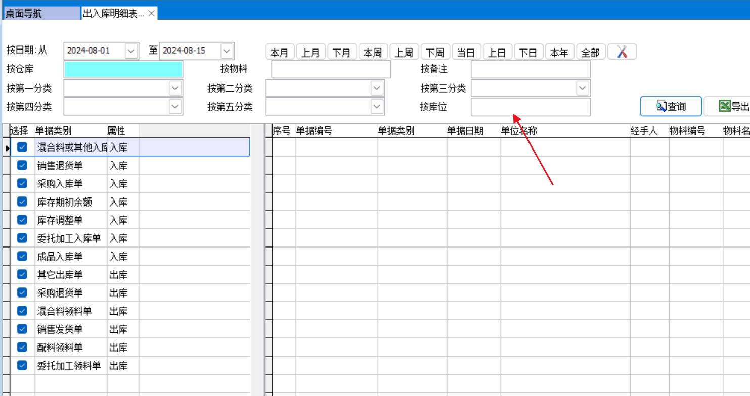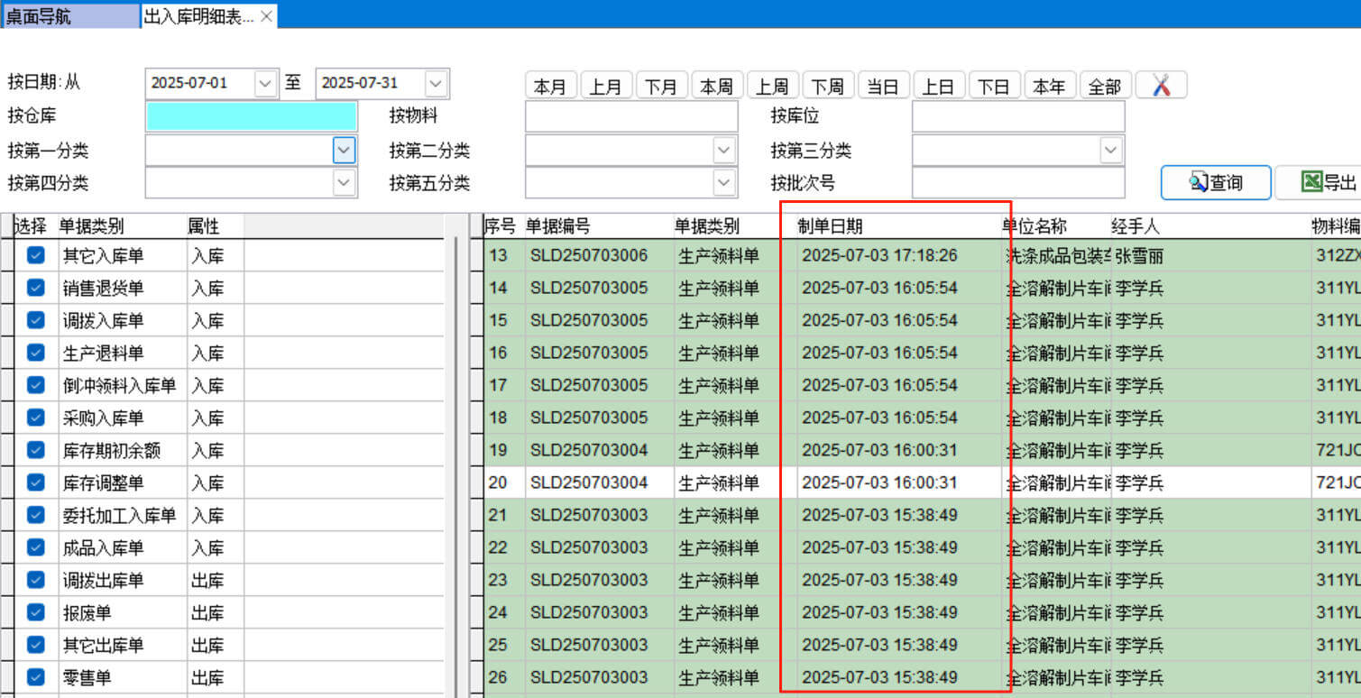 出入庫明細表用來查看一段時間的所有出入庫單據