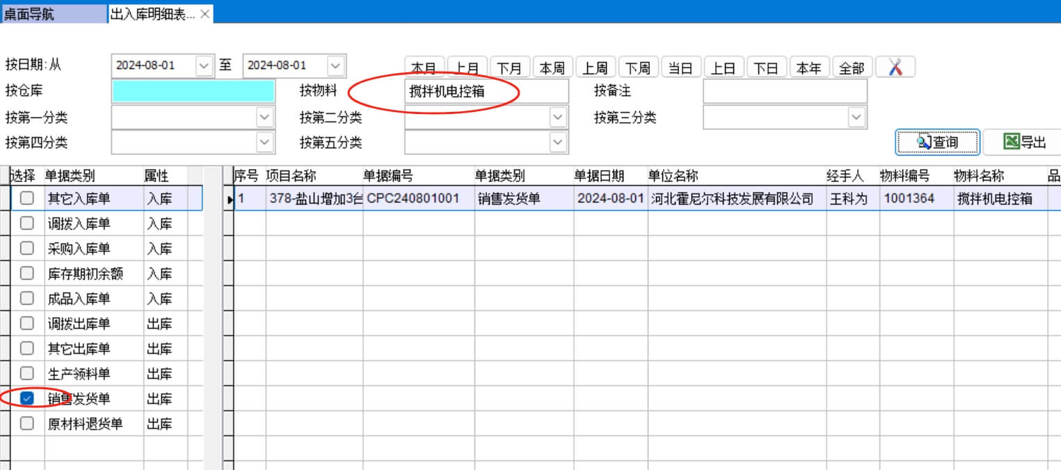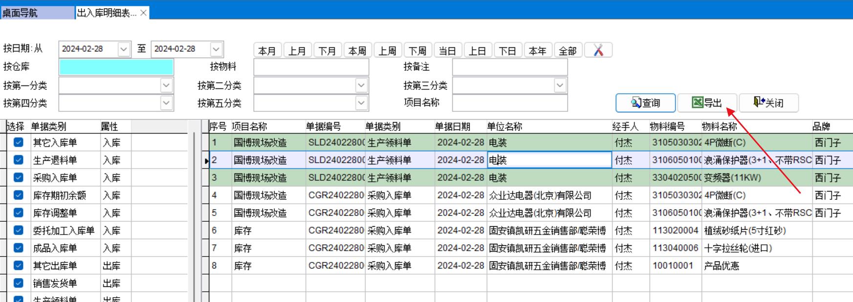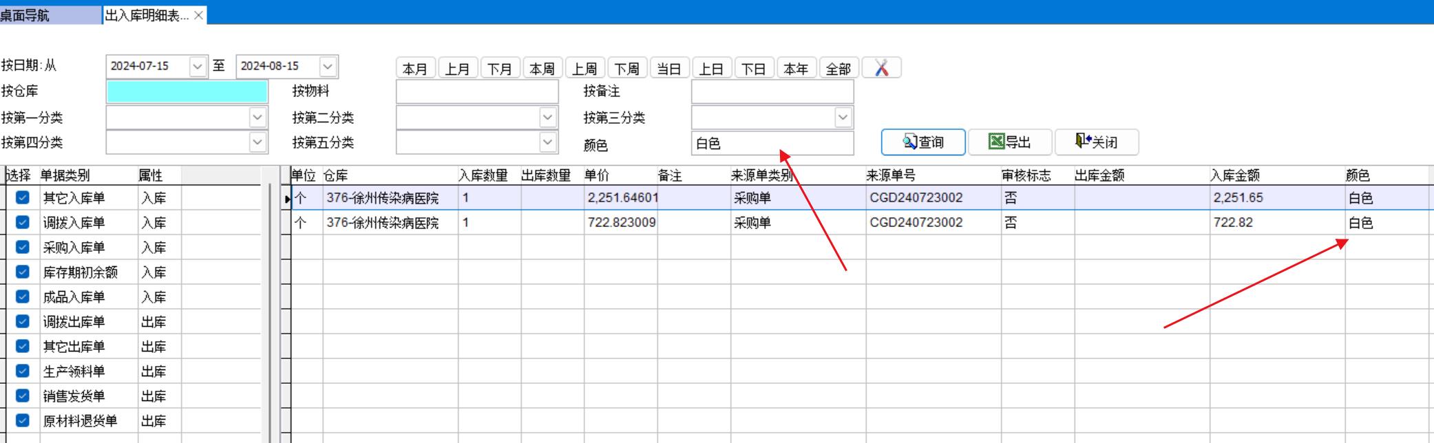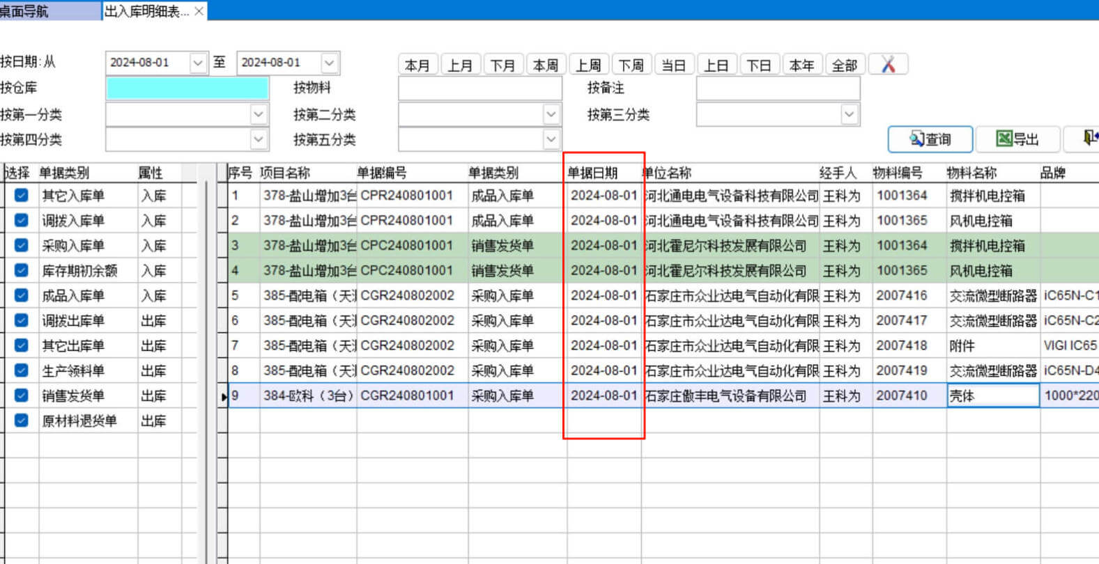 出入庫明細表用來查看一段時間的所有出入庫單據