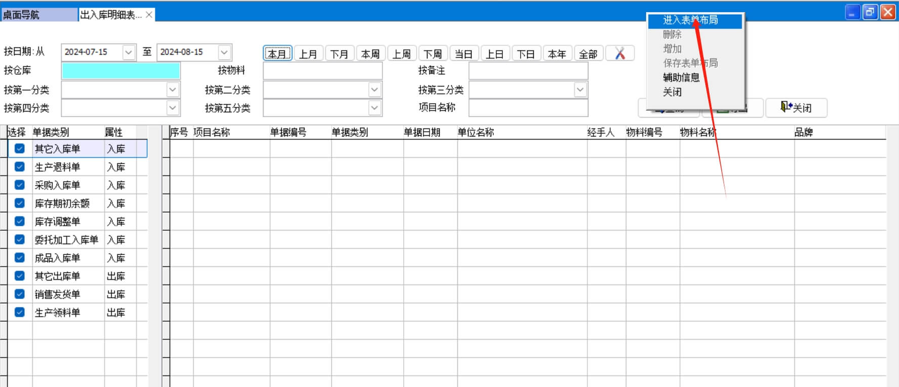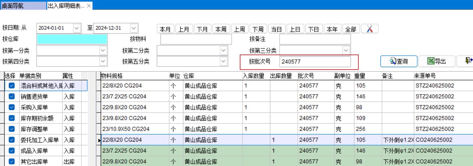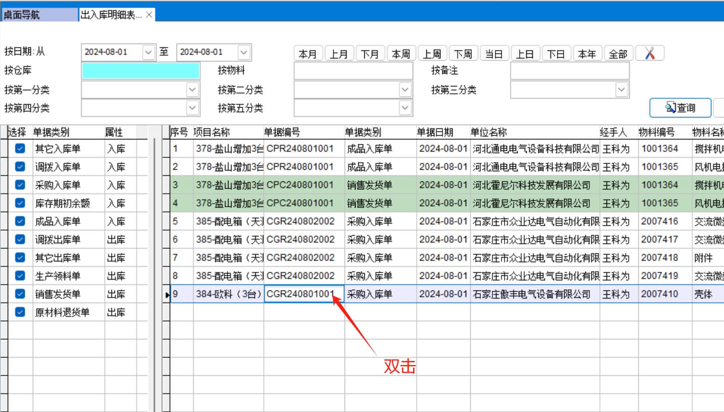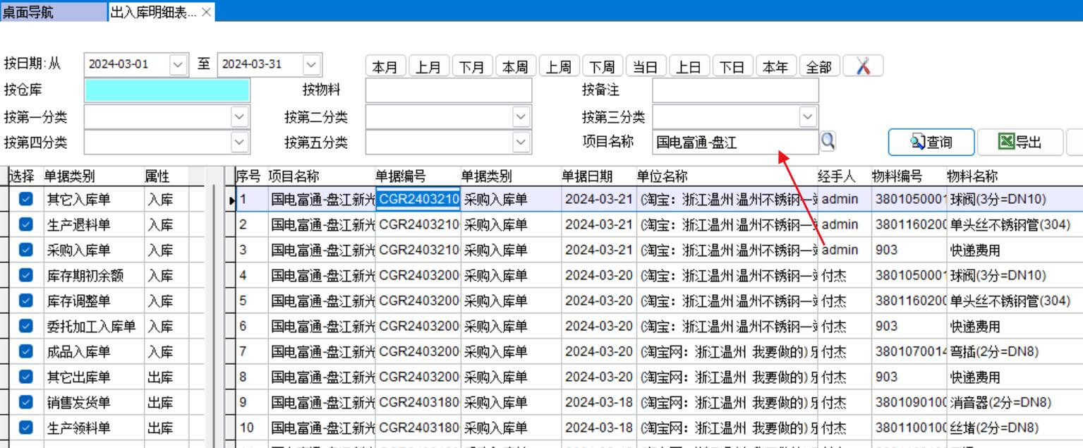 出入庫明細表用來查看一段時間的所有出入庫單據
