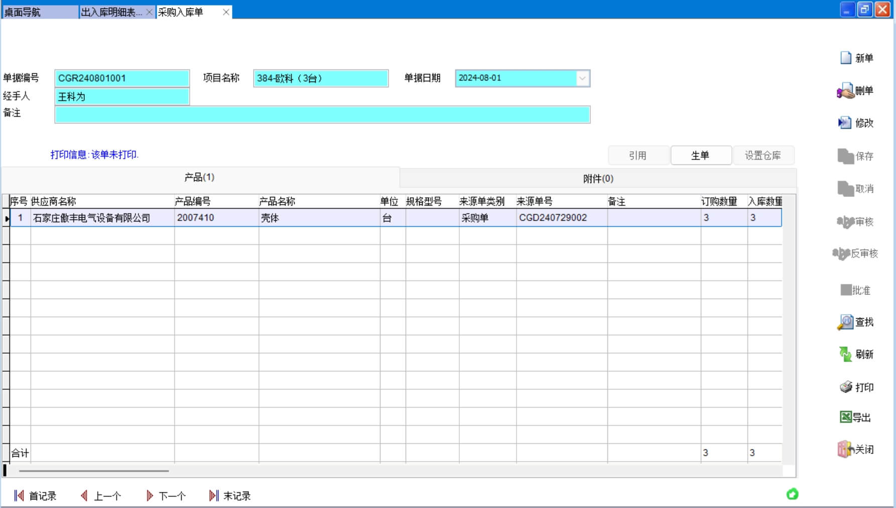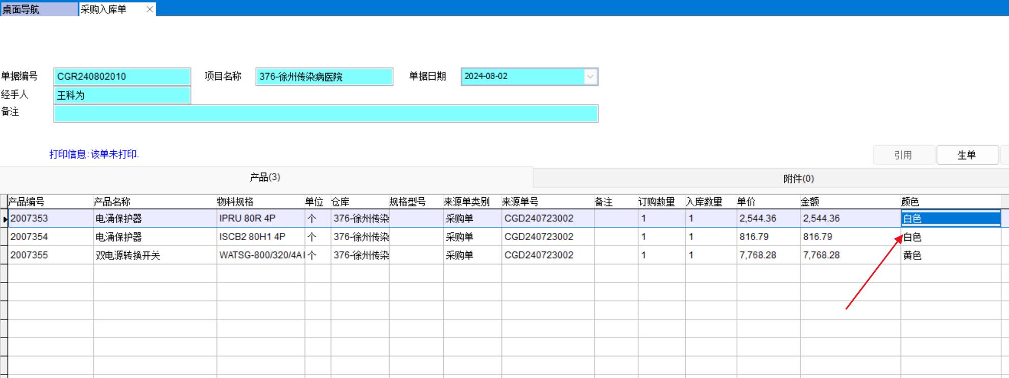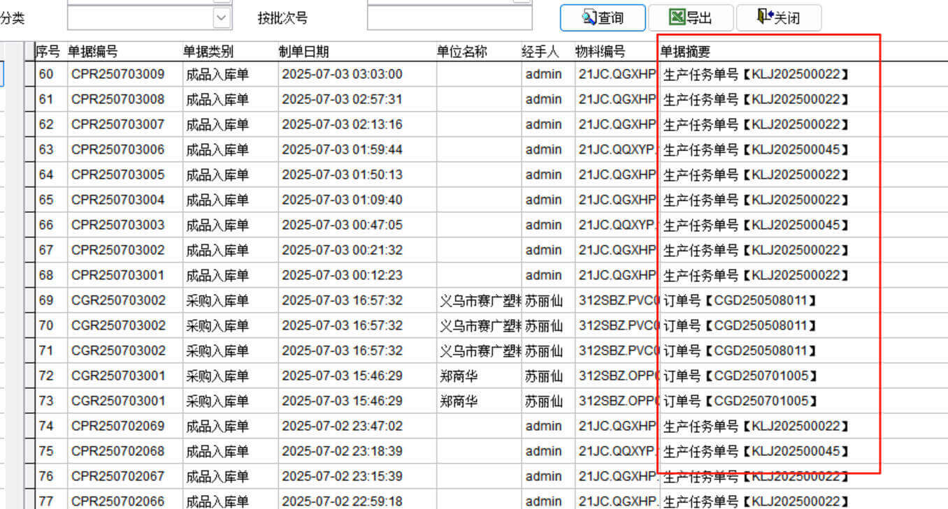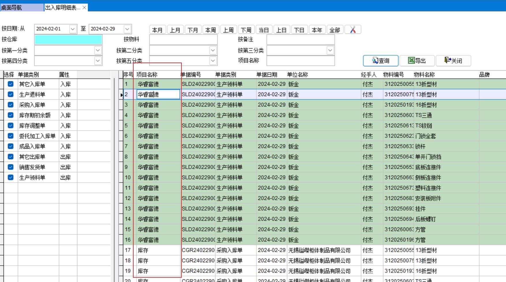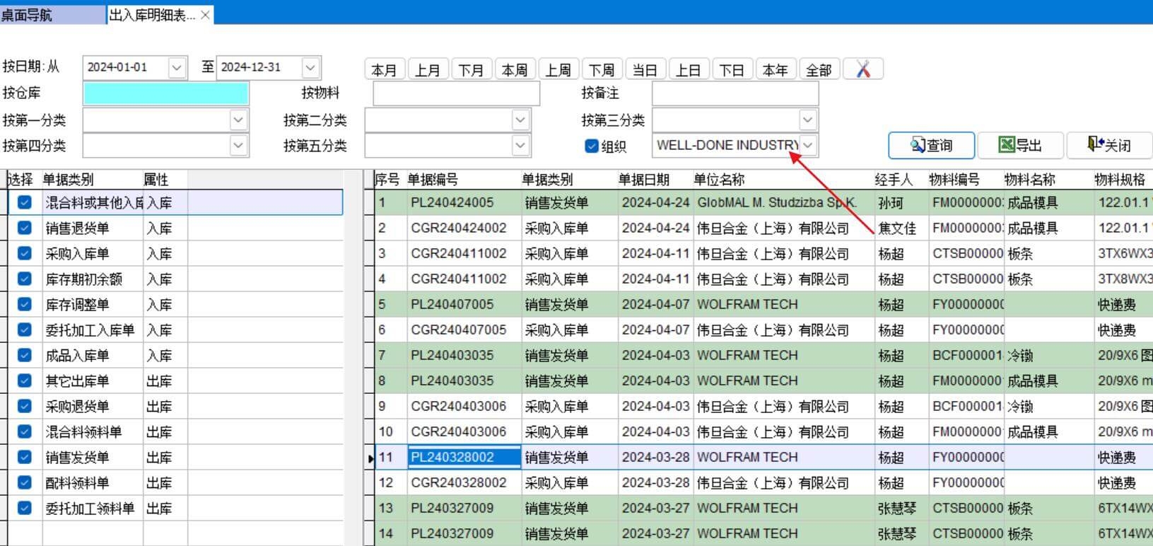 表格中白色是入庫單記錄,綠色是出庫單記錄