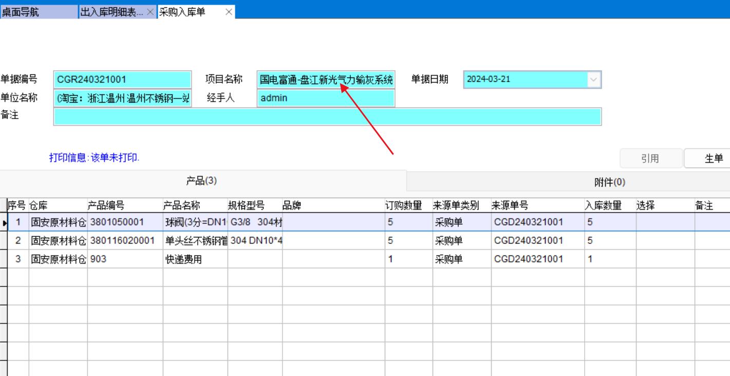 打開路徑:【主菜單】->【倉庫】-> 【報表】-> 【出入庫明細表】