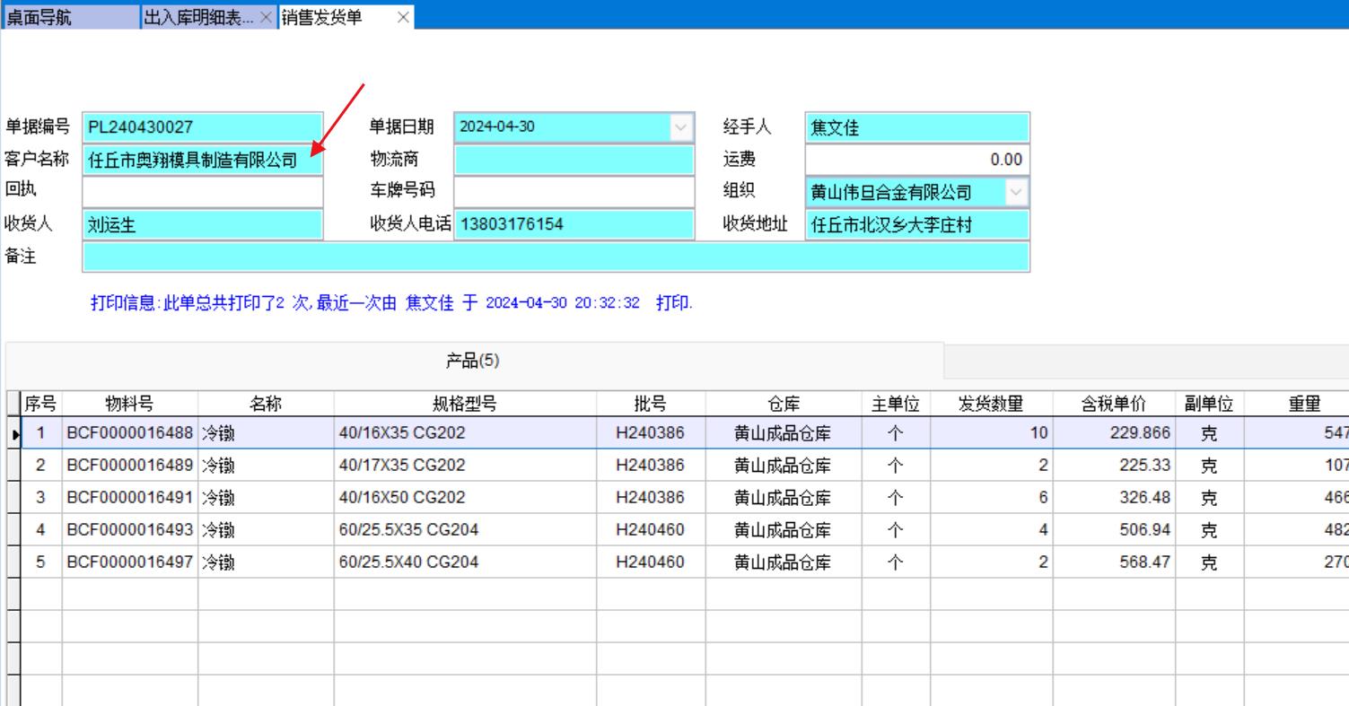出庫單類別包括銷售發貨單、原材料退貨單、生產領料單、委托加工領料單、其它出庫單等
