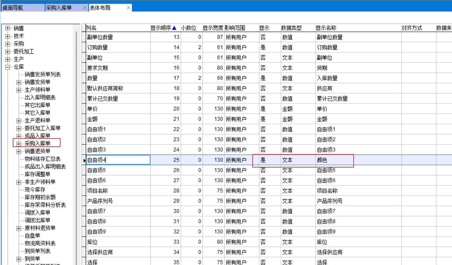 自由項就是讓用戶自己定義一個屬性,讓ERP系統更符合客戶實際需要。