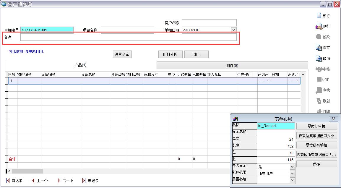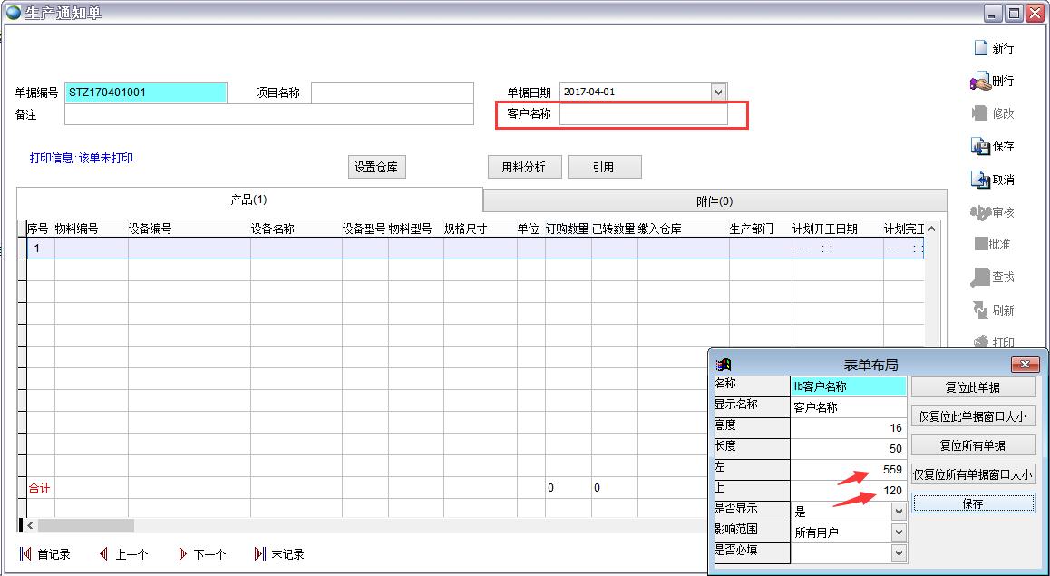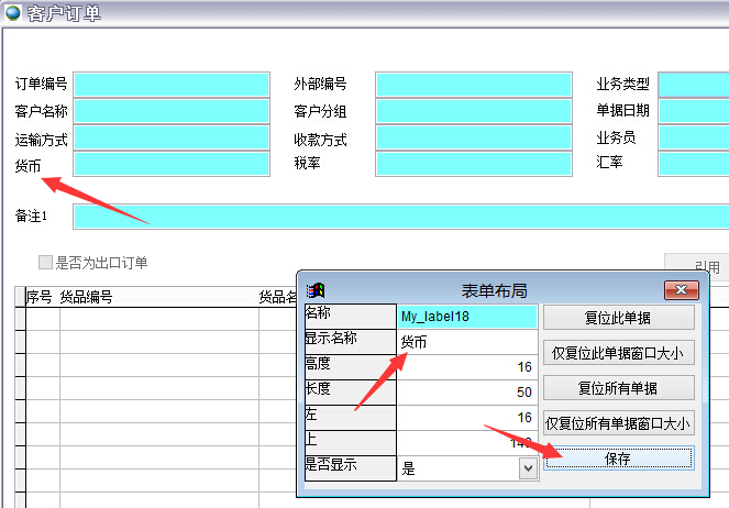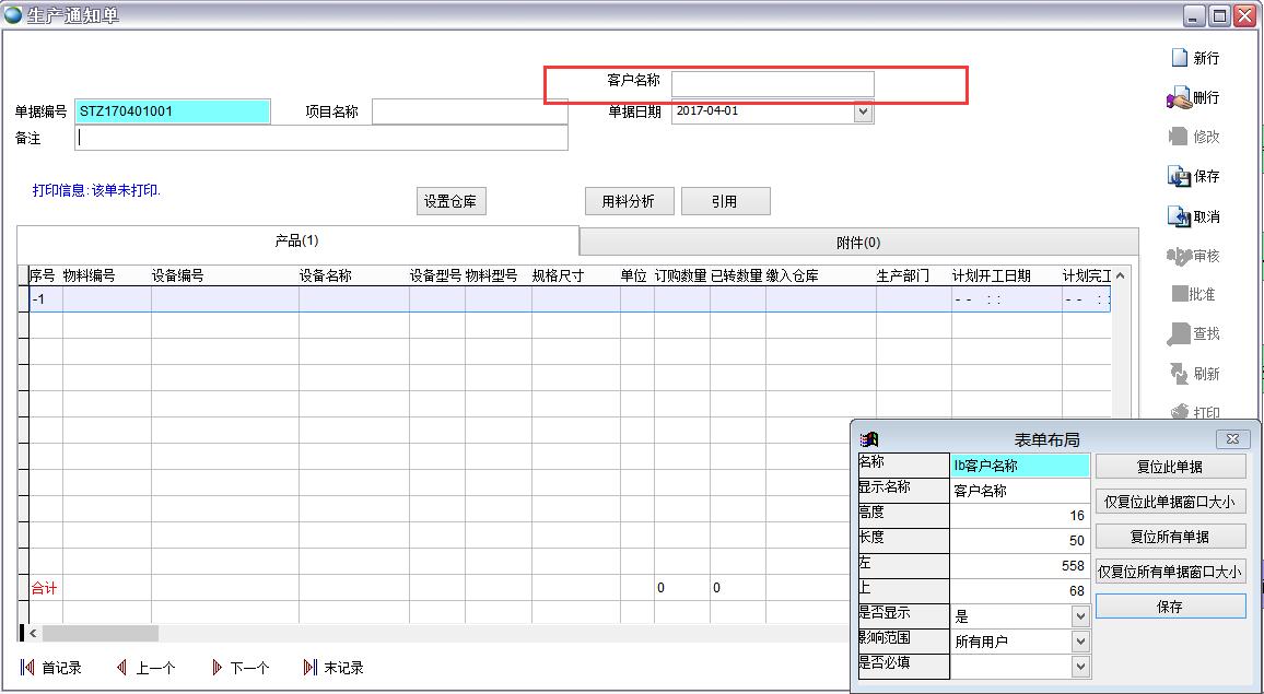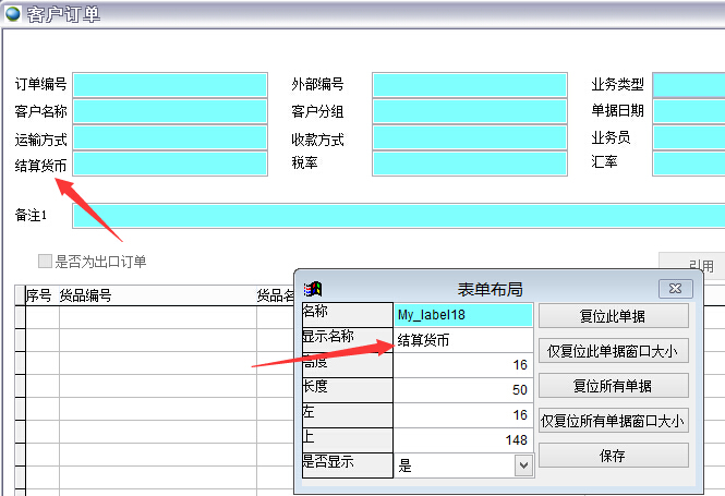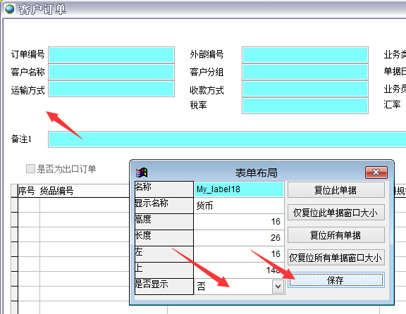 表單布局可以修改單據的顯示內容、修改顯示位置、隱藏內容