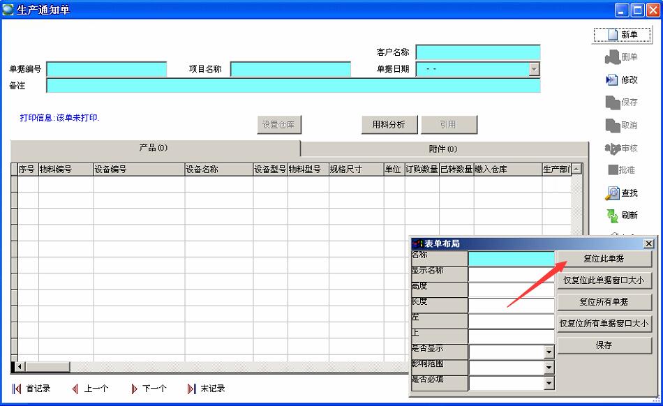 將所有單據的顯示內容、窗口大小都恢復為默認值