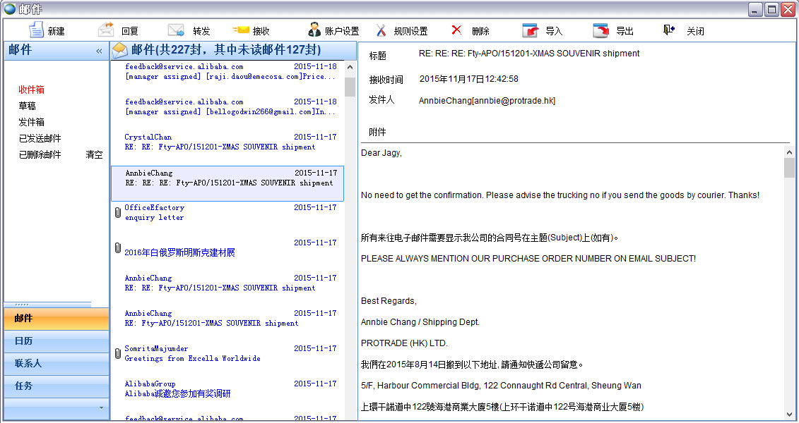 其他操作與Outlook或其他郵件客戶端相同就不另說了