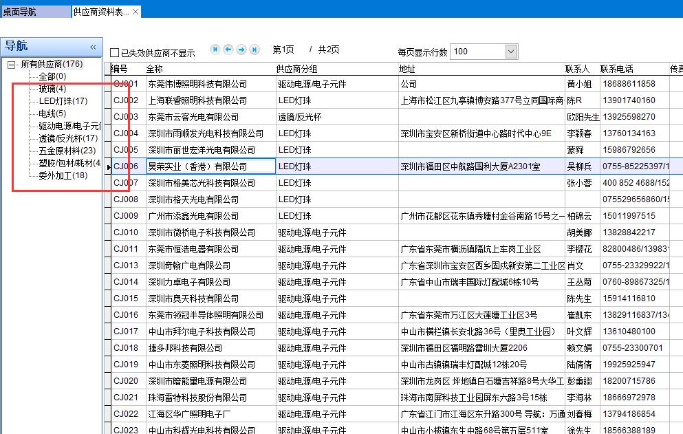 可以對供應商進行分組管理,點擊左下角字母按鈕可快速查看供應商信息。