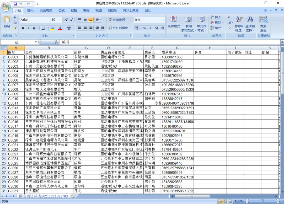 系統剛使用時可以將已有的供應商資料一次性導入,打開安裝目錄下的數據導入模板目錄,選擇供應商資料表模板(必須使用我方提供的模板),目前只支持導入導出到excel或WPS。在模板中,紅色字段為必填項目,輸入的最大長度不能超過規定要求,一個漢字占兩個字符。