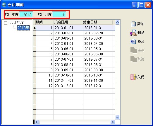 下面以初次使用本系統(tǒng)為例說明,第二年的期初錄入請(qǐng)用戶自行操作。假設(shè)2013年1月新建帳套。