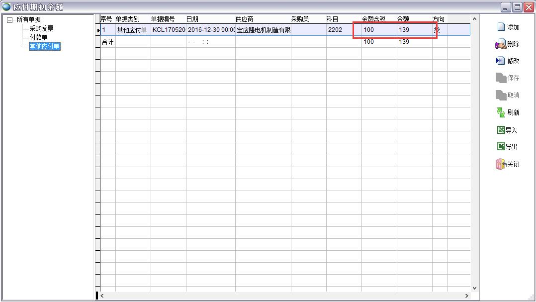 應(yīng)付錄入的期初余額數(shù)據(jù)也會(huì)同步到科目期初余額,詳見科目期初余額。