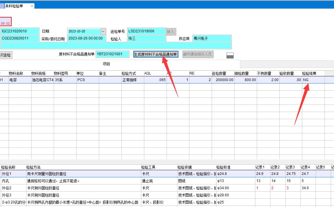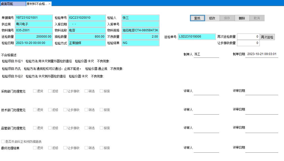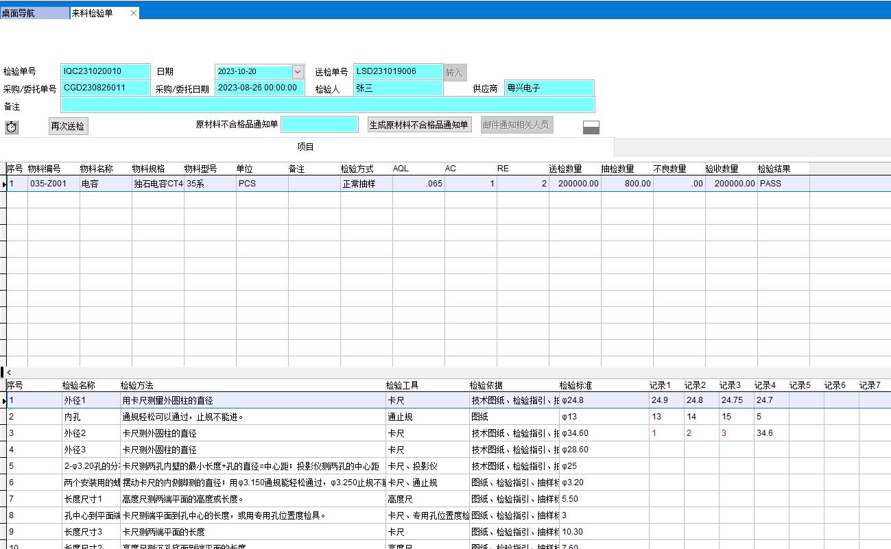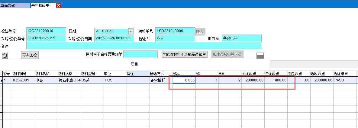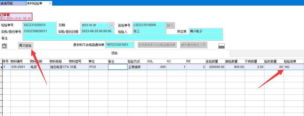 附件 可以將檢驗報告作為附件上傳存檔 不合格品通知單 對判定結果是NG的來料檢驗單可以直接生成原材料不合格品通知單送達各部門 再次送檢 對NG的檢驗單可以點再次送檢,會生成一張新的來料送檢單 相關知識