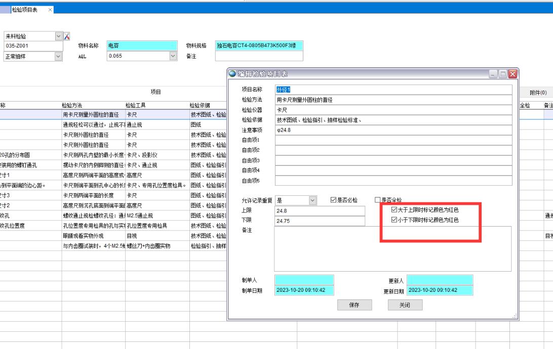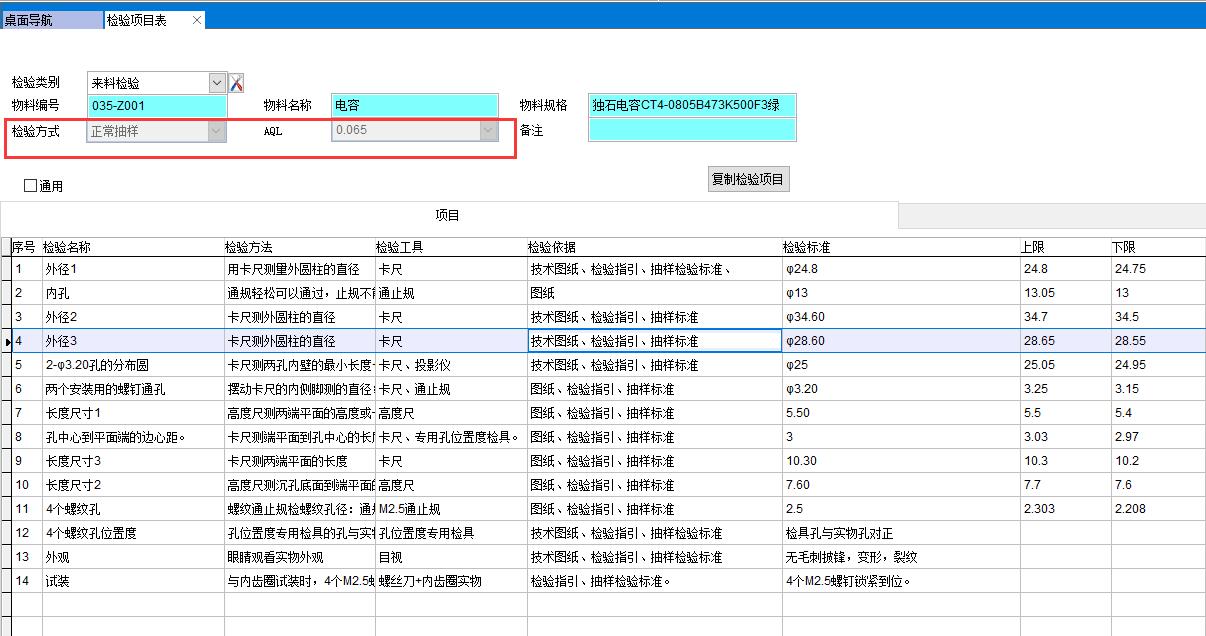 1、在檢驗項目表中先建立每個物料的檢驗項目