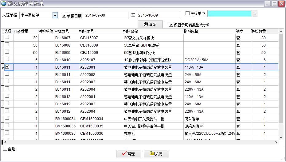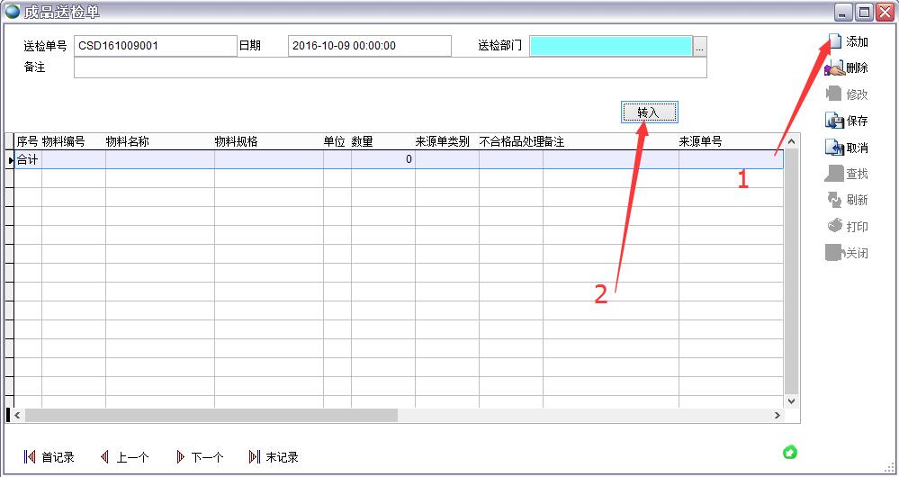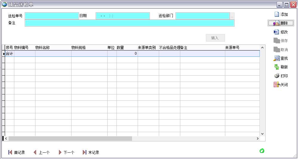 打開路徑:主菜單->質量->成品送檢單->成品送檢單