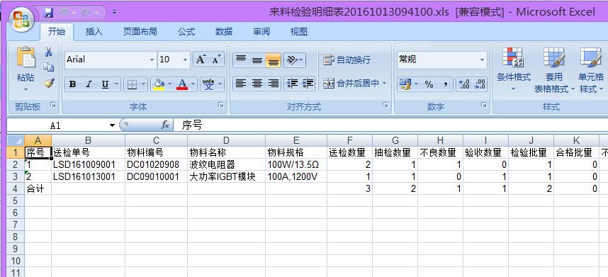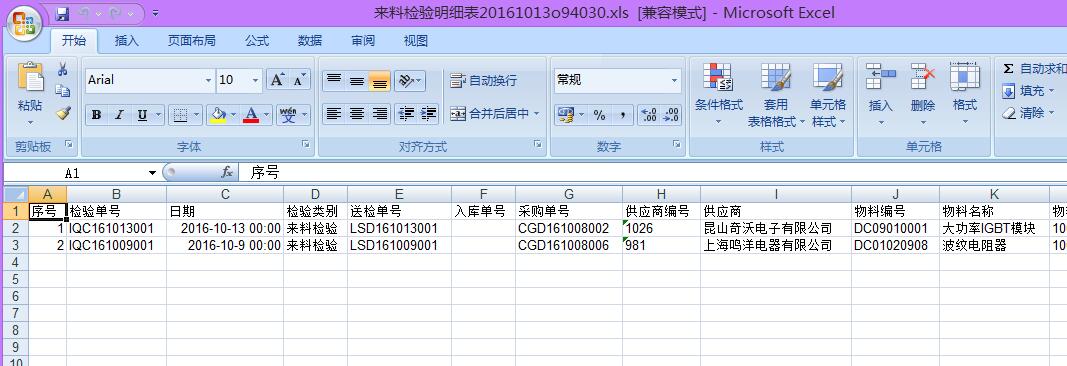 打開路徑:【主菜單】->【質量】-> 【報表】-> 【來料檢驗明細表】