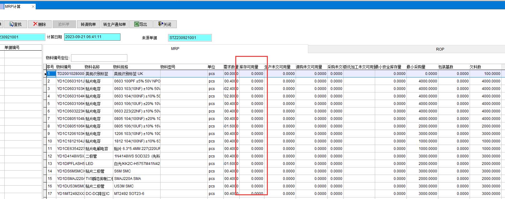臨近要生產的工單(生產通知單)還未領料,在領料前看庫存料是否滿足領料需求