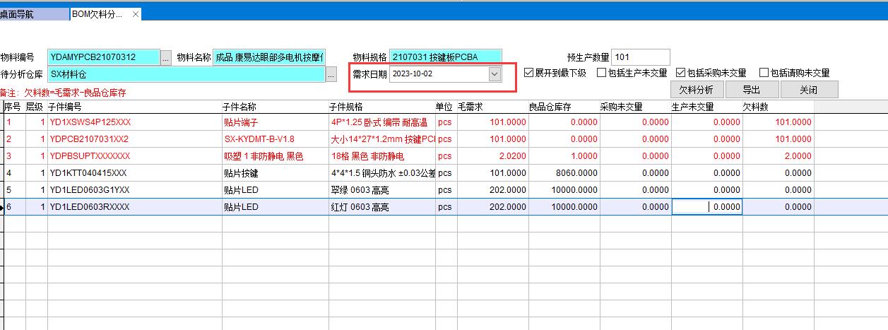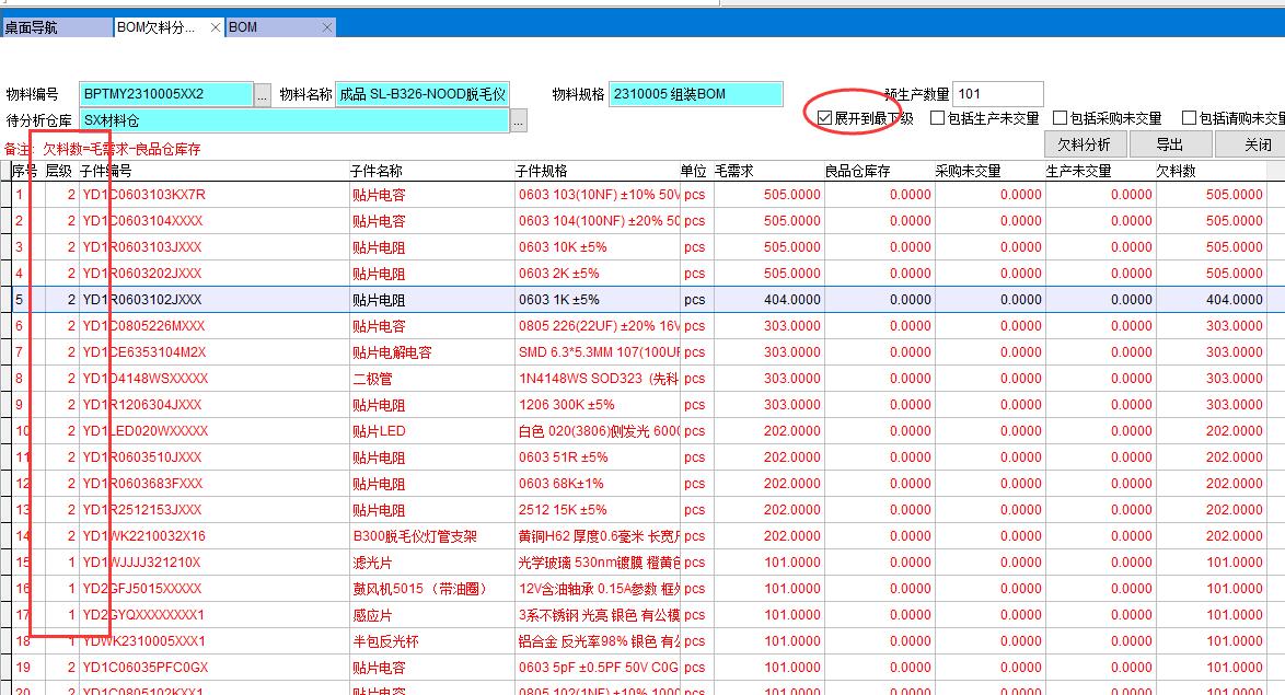 BOM欠料分析是對產品的BOM物料進行需求分析,因此使用的前提條件是必須有BOM。
