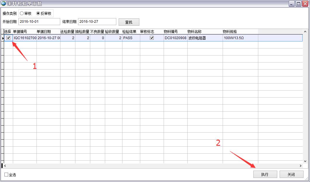操作類別選擇反審核,勾選單據,點執行