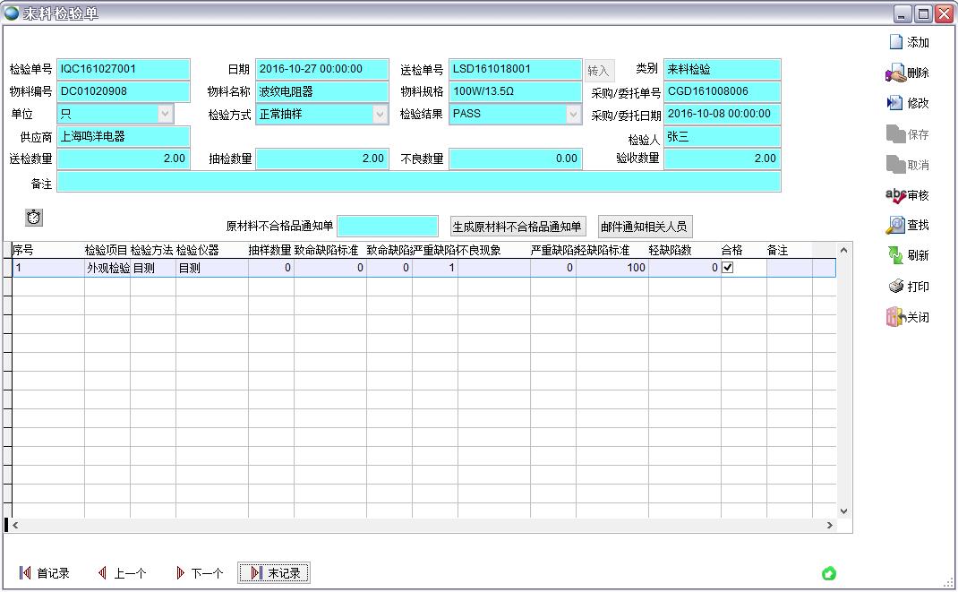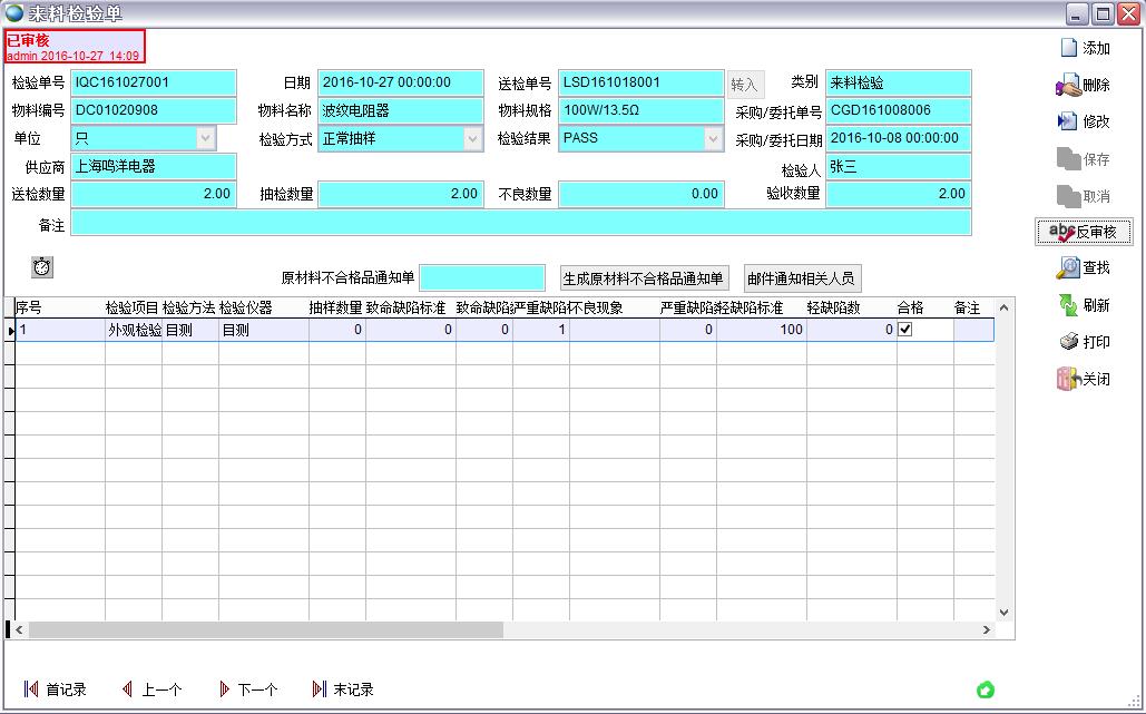 來料檢驗單審批可以批量審核來料檢驗單