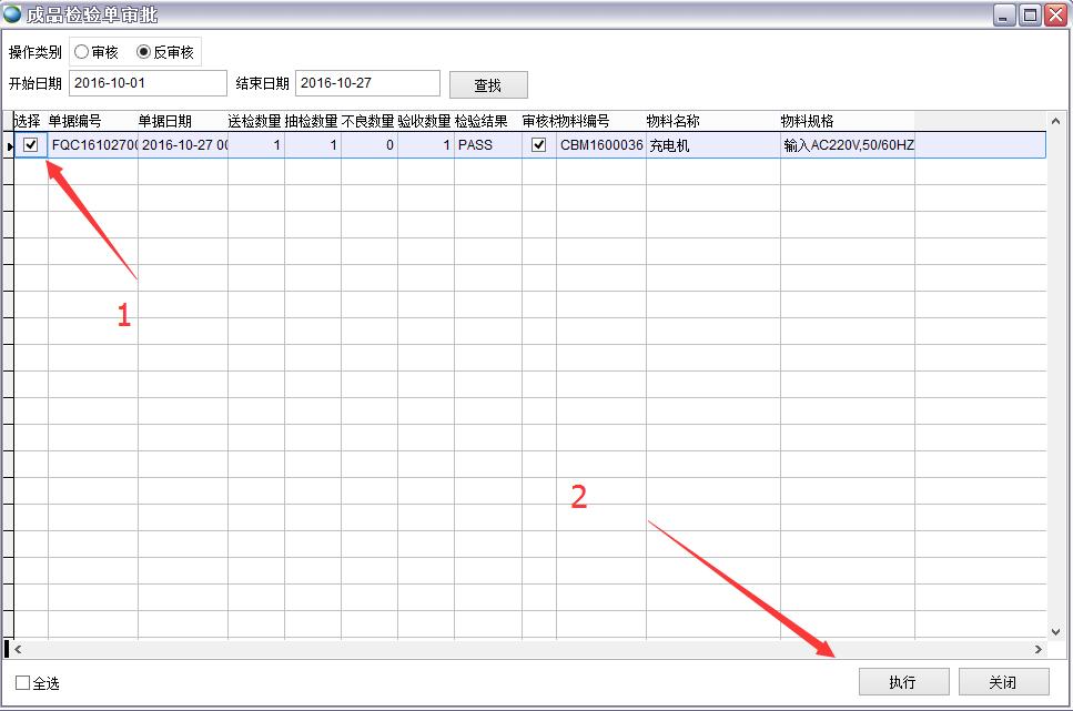 操作類別選擇反審核,勾選單據(jù),點(diǎn)執(zhí)行