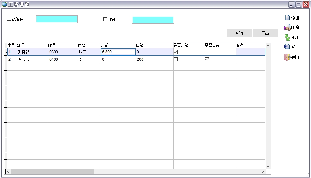 計時人員工資在工資設置中手工添加,月薪員工填寫月薪多少,日薪員工填寫日薪多少。