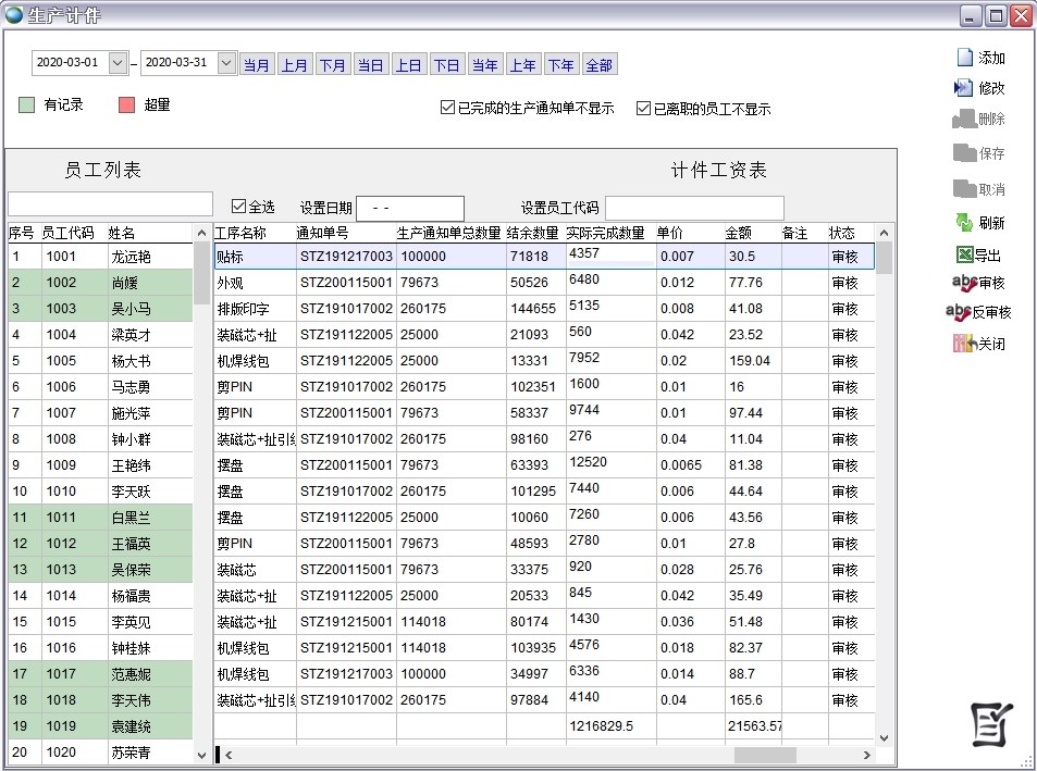所有需要計算工資的員工都要錄入員工檔案信息,工資計算方式選擇計件工資或計時工資。