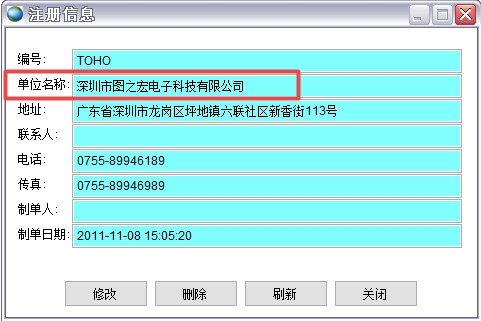 需要注意的是系統管理->注冊信息中的單位名稱必需填寫,且必需和巨靈鳥簽訂的合同中的公司名稱保持一致,否則無法自動更新程序