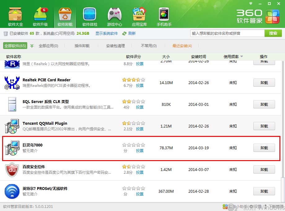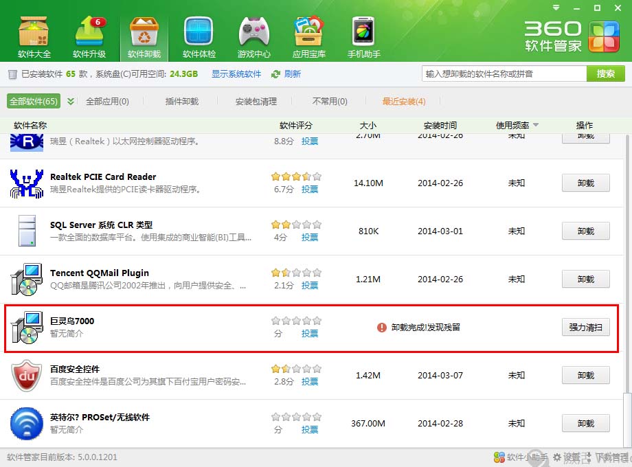在巨靈鳥(niǎo)7000的471版本和巨靈鳥(niǎo)5000的3082版本之前版本才出現(xiàn)無(wú)法卸載的問(wèn)題,之后版本都沒(méi)有這個(gè)問(wèn)題。