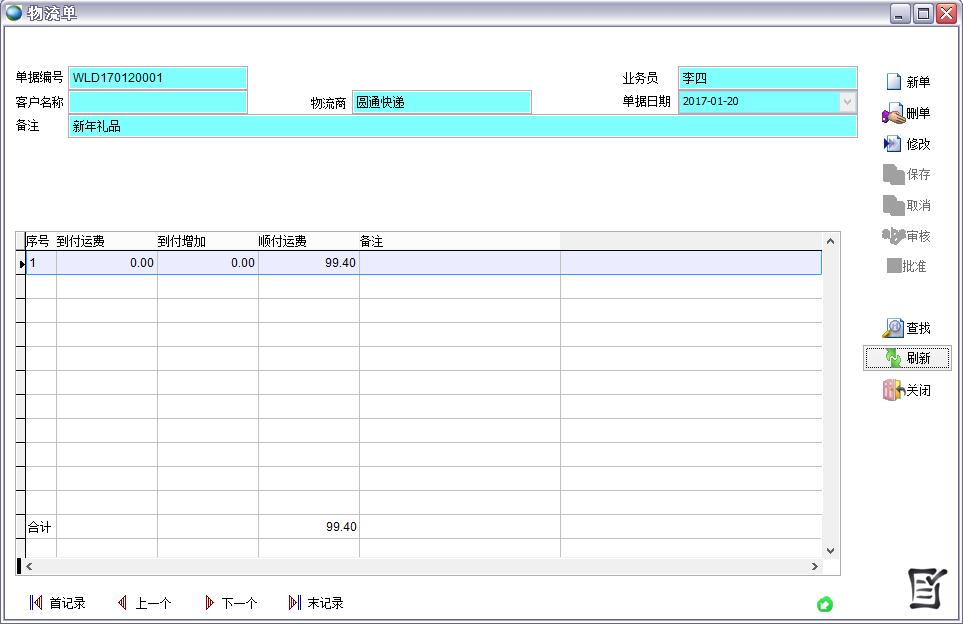 打開路徑:【主菜單】->【銷售】-> 【物流單】