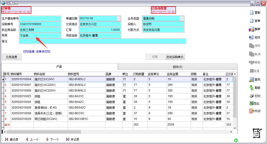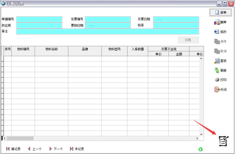 打開路徑:【主菜單】->【采購管理】-> 【采購發票】->點右下角