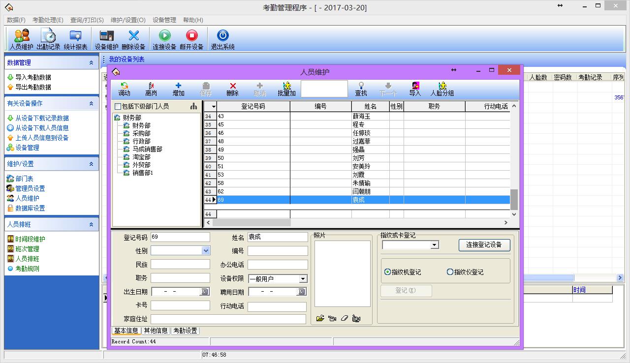目前巨靈鳥支持的考勤機是中控科技的產品,我們以U160為例 將U160型號考勤機通過網線進行連接,然后在考勤機軟件中進行設置 輸入服務器ip地址或域名,登錄用戶和密碼后,如果設置正確的話在選擇數據庫列表中會出現可選擇的數據庫 測試連接成功后考勤機就已經連到ERP系統了,員工正常打卡的信息就會自動存入ERP,在考勤機軟件上可以進行人員的設置,設置的信息也會自動同步ERP中的數據