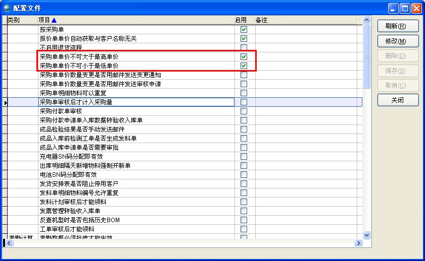 要實現價格控制,首先在【系統管理】->【配置文件】中勾選下述選項,如圖所示: