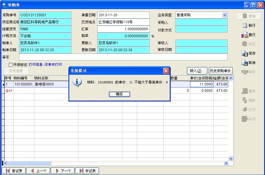 有時候為了實現控制采購員的采購行為,需要對采購物料進行價格限制。