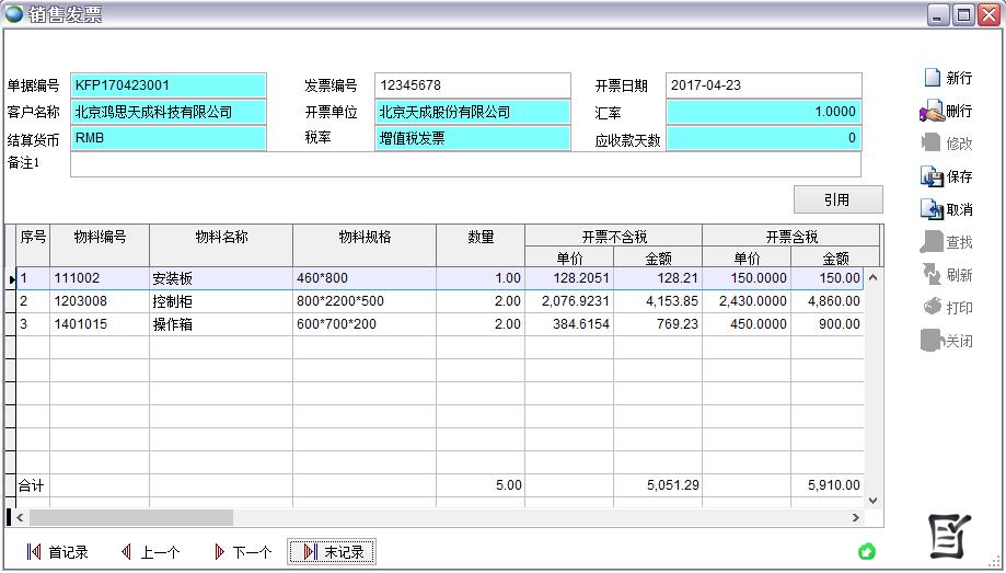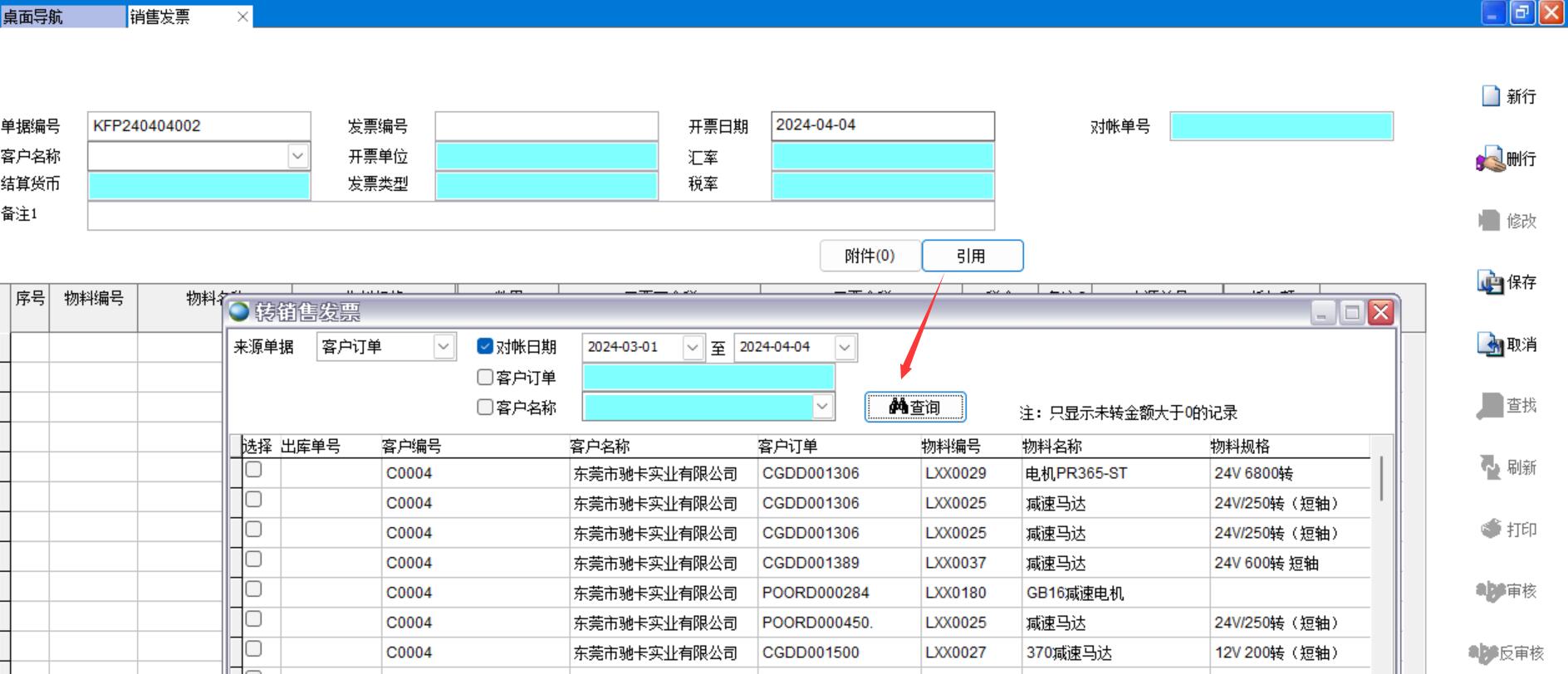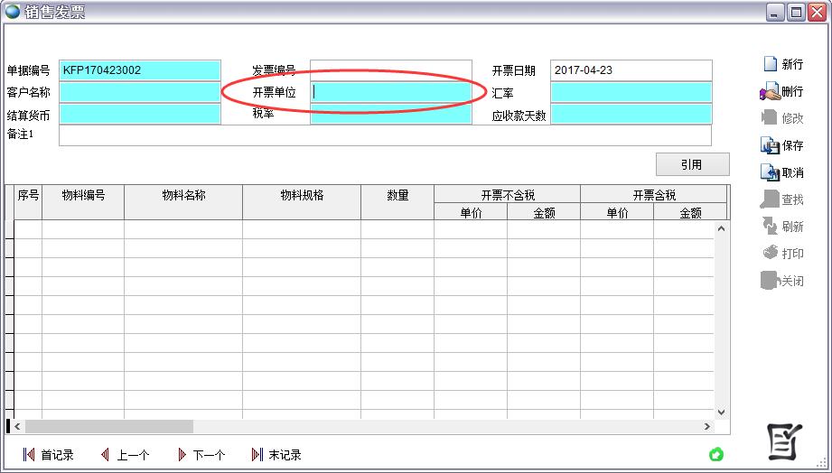 引用相關單據后就會將客戶資料表中的開票單位引用過來了,最后點保存