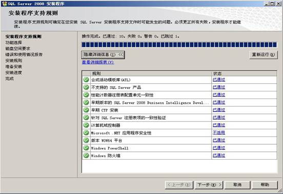 17.安裝過程中,程序會自動檢測相關的支持規則,如下圖所示: