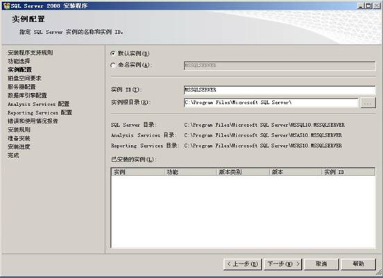 25.對實例進行設置,直接選擇默認實例進行安裝,點擊【下一步】,如下圖所示: