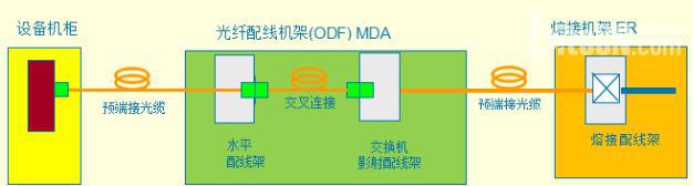 云計算數據中心一般在主配線區(MDA)或中間配線區(IDA)采用交叉連接(Cross-connect)的連接方式,即交換機采用跳線連接到一個影射配線架上,日常維護中如網絡需求變化比如需要對跳線增加、移動或者變更(MAC),管理員無須在交換機上進行插拔,只須在影射配線架和水平配線架之間進行跳線操作。