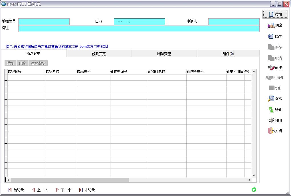 BOM變更分三種形式:新增變更(添加物料)、修改變更(修改已有物料)、刪除變更(刪除某個物料)