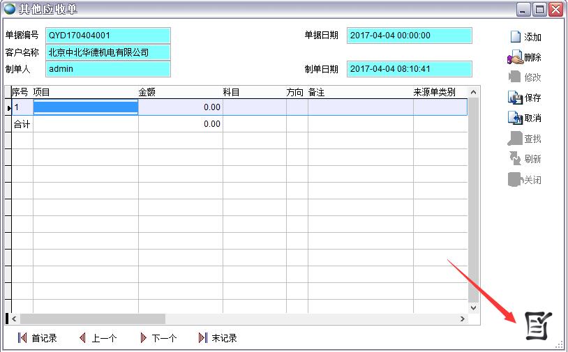 打開路徑:【主菜單】->【應收應付】-> 【應收】-> 【其他應收單】