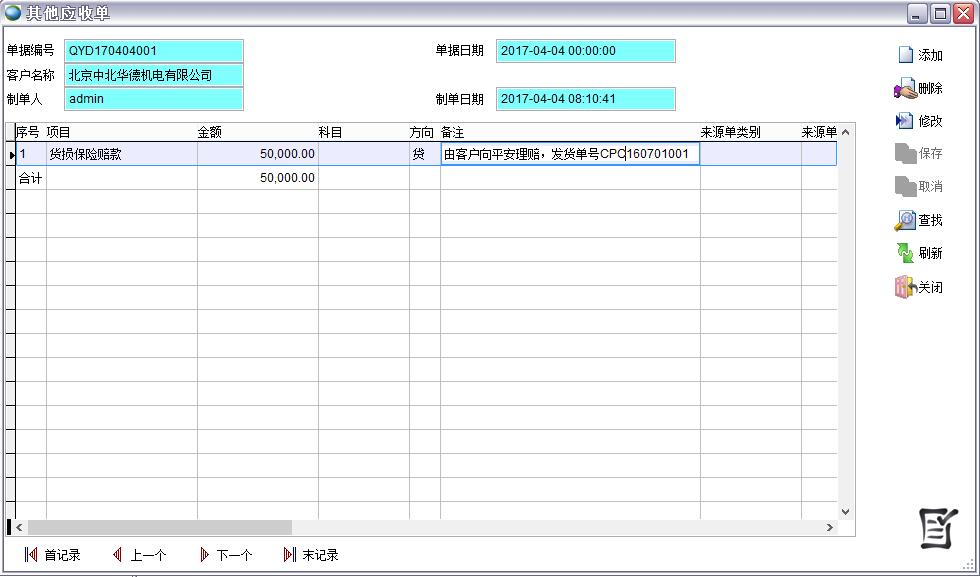 其他應收單可以錄入在商品交易業務以外發生的各種應收、暫付款項