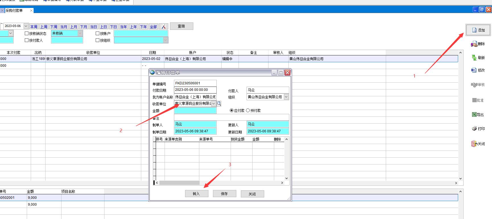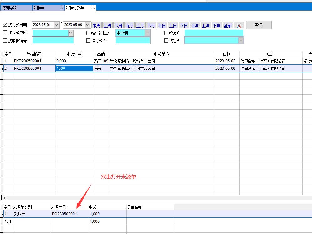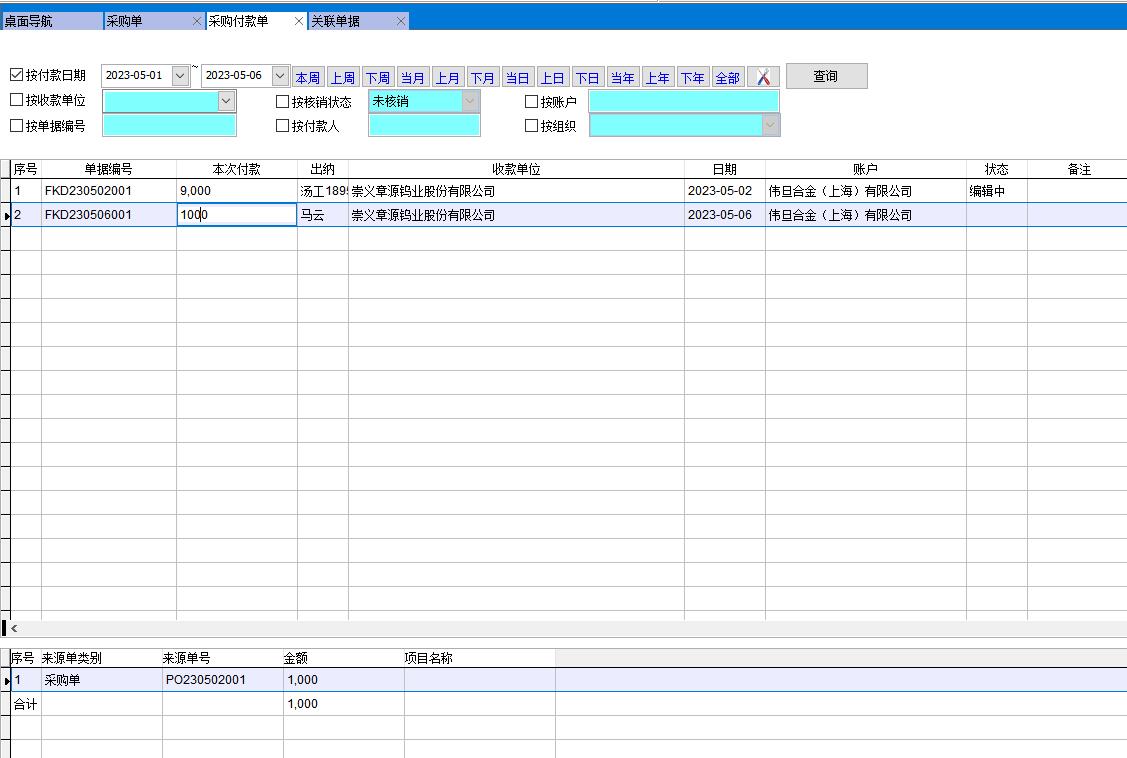 有些企業的采購付款流程是這樣的:采購員先做采購付款申請單給領導批,然后財務做采購付款單引用采購付款申請單