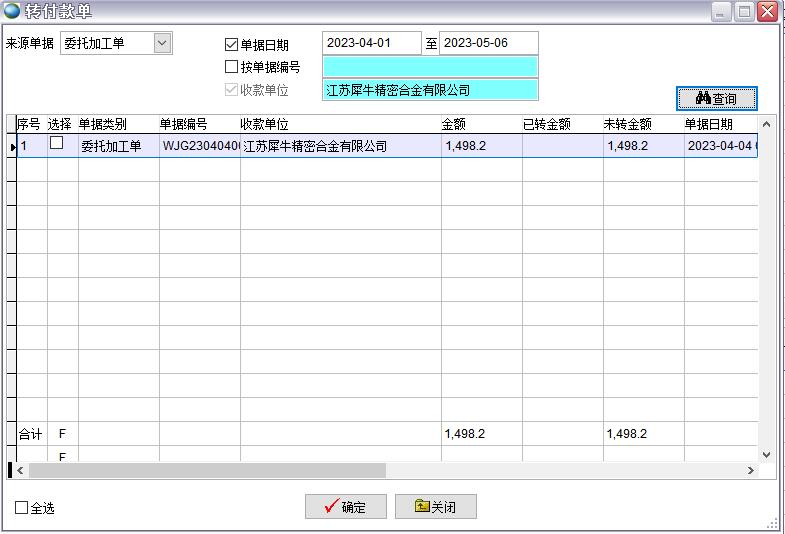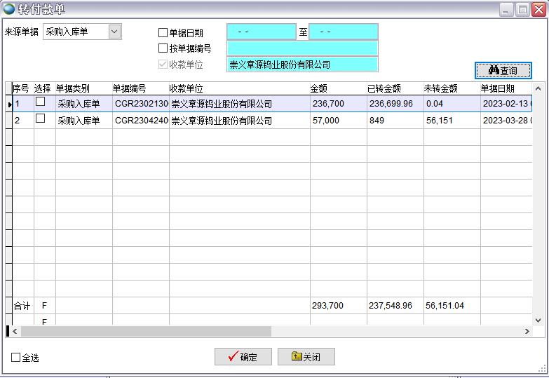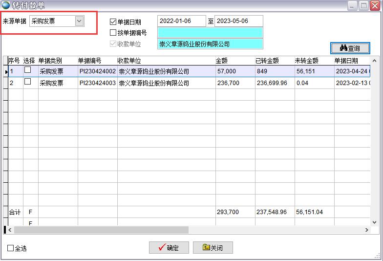 2、來源單據選擇采購單,選擇需要付款的采購單,點確定