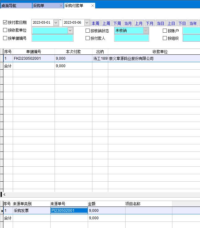 在實際業務中付款單與來源單據往往不是剛好一對一的關系,比如引用采購發票,可能一張采購付款單對應多張發票,或者一張發票對應多張采購付款單,即多次付款。