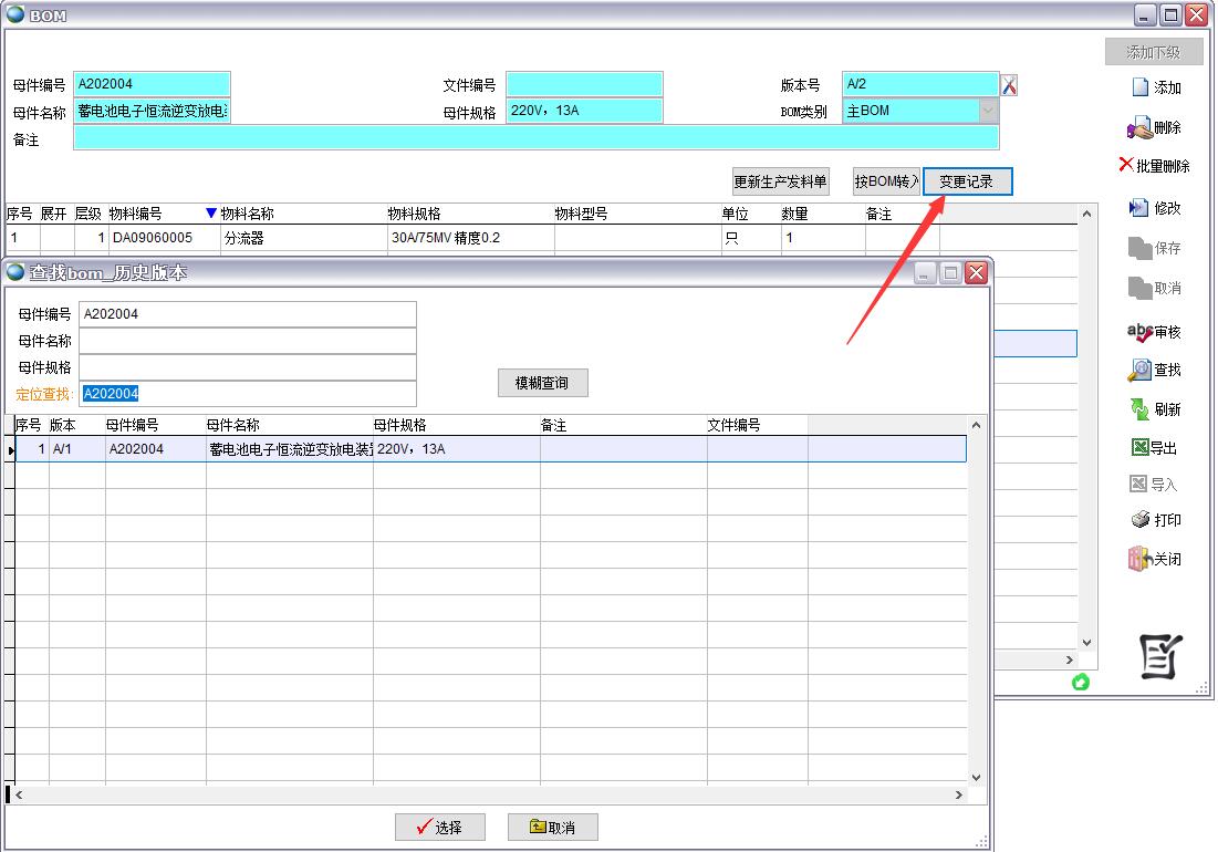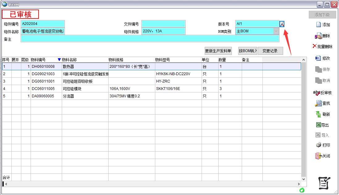 當審核過的BOM點反審核后,版本號會自動加1。BOM在未審核的狀態(tài)下進行修改,版本號不會發(fā)生變化。