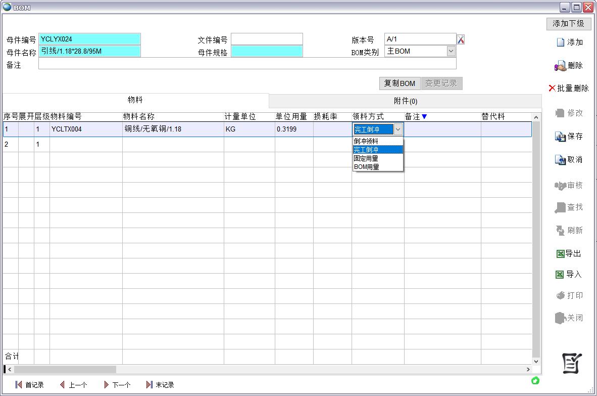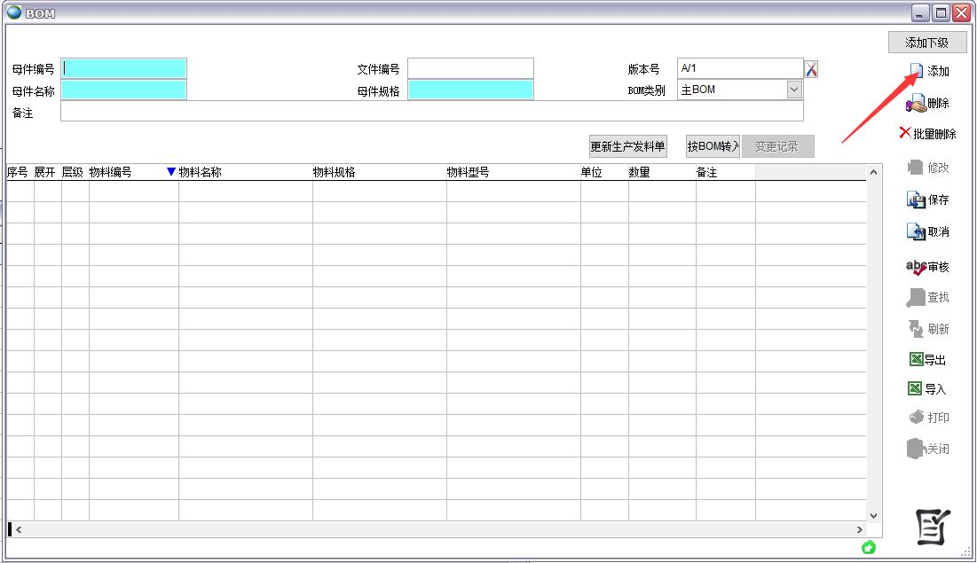 在不修改的狀態(tài)下點添加就是添加一個新BOM
