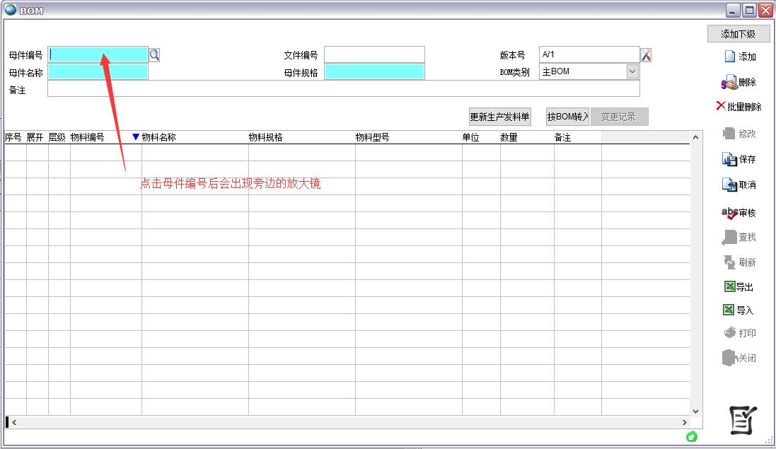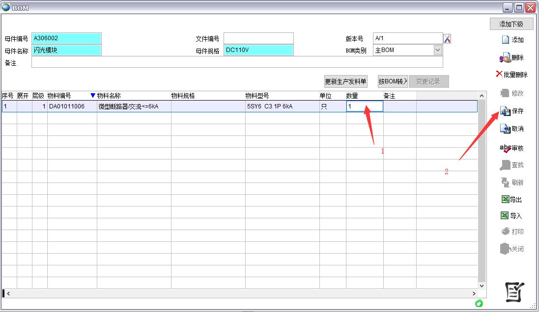 在修改狀態(tài)下點添加就是添加該BOM的子物料