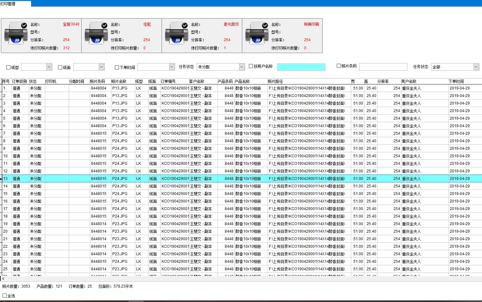2、不同打印材質的照片需要能自動分配到相應的打印機進行打印