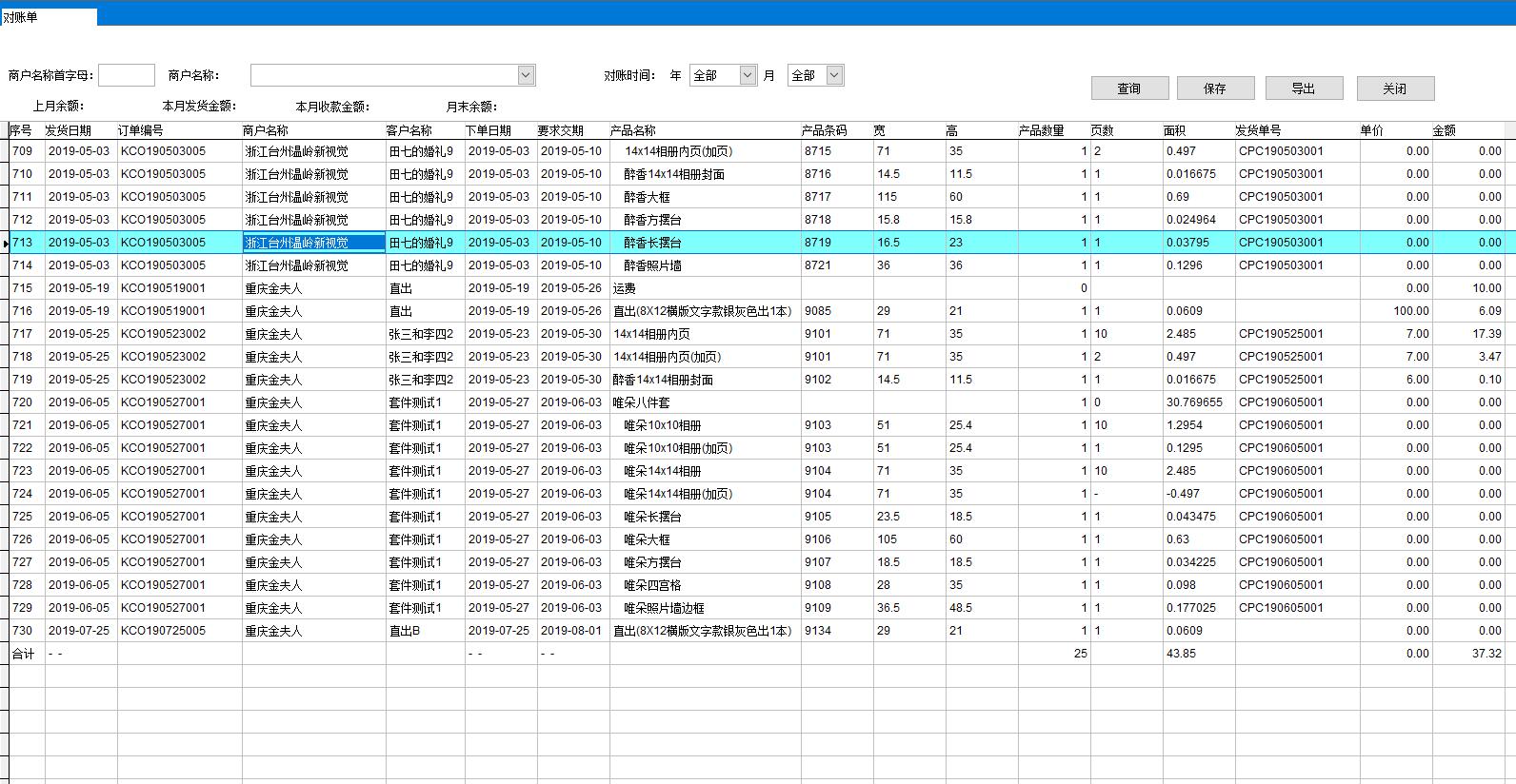 4、將產品發送給商戶并對賬。